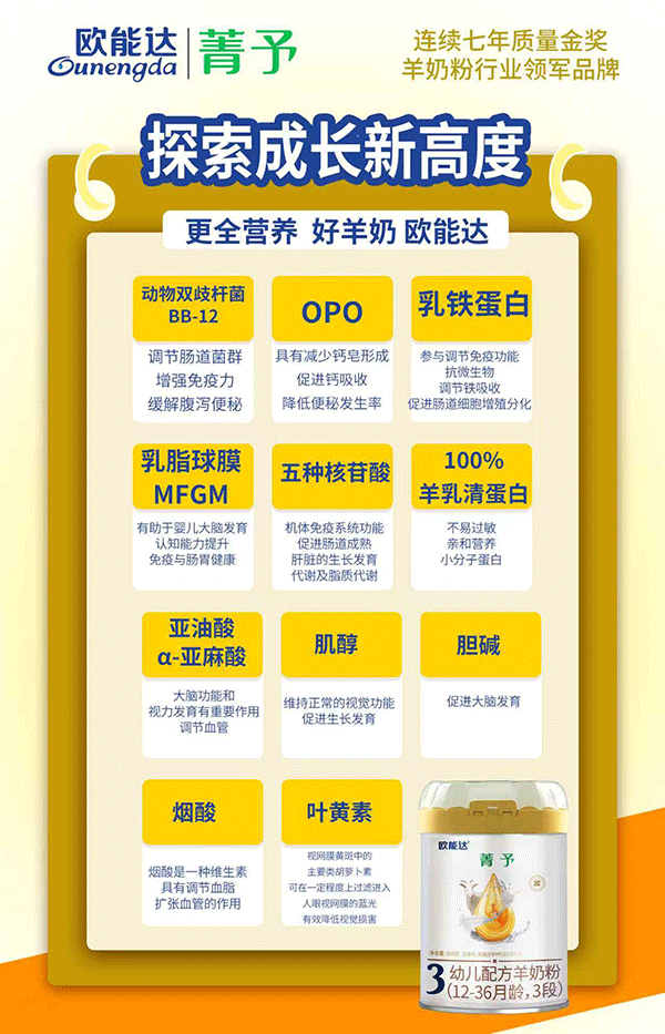 满满都是好营养,动物双歧杆菌BB - 12、OPO、乳铁蛋白等多种营养强强联合,