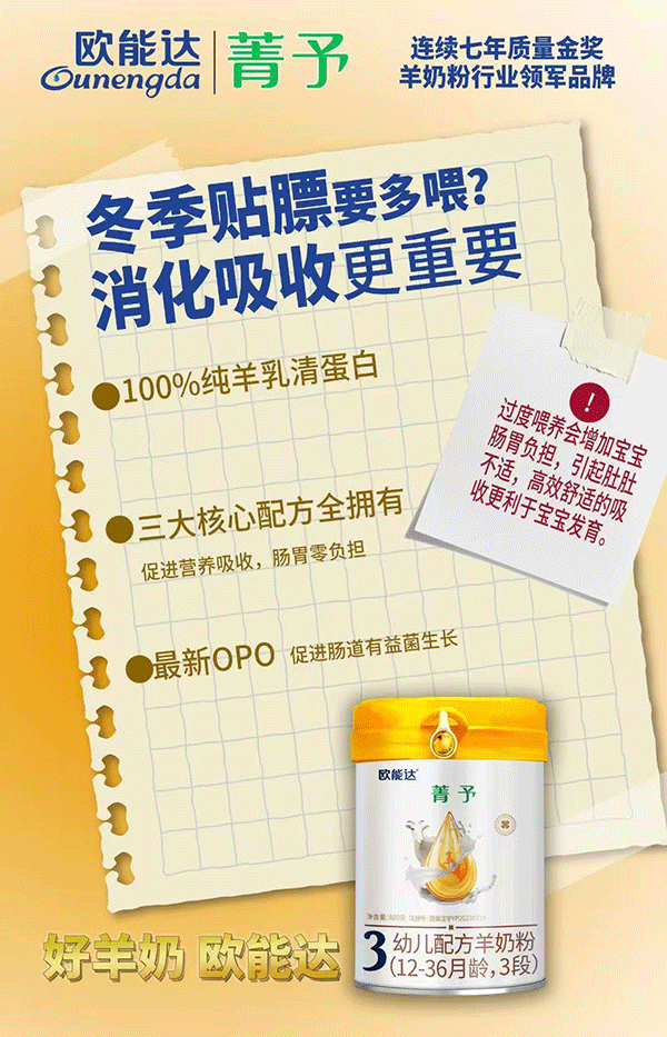 #欧能达菁予羊奶粉(七年质量金奖)直接把“好吸收”焊在配方里: