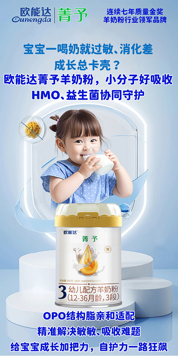 #欧能达菁予羊奶粉,小分子好吸收,HMO、益生菌协同守护,OPO结构脂亲和适配,